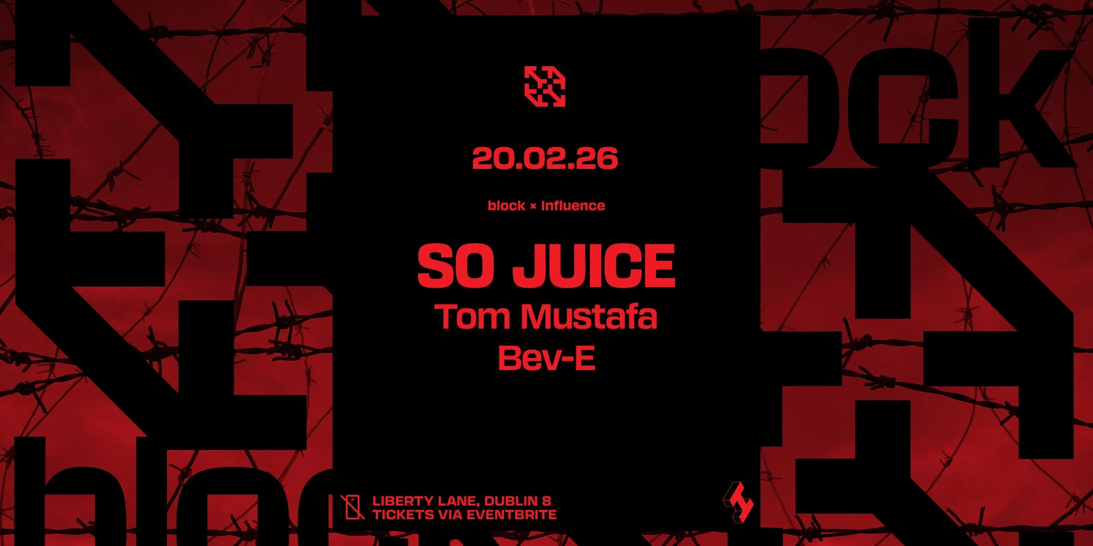 block x Influence. So Juice Friday 20 February 2026 23:00 Saturday 21 February 2026 02:30 Google Calendar ICS Tickets Here