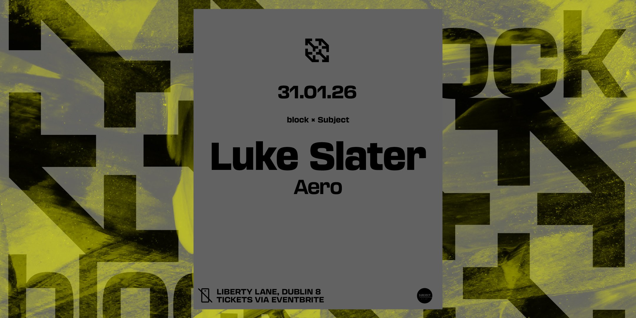 Back to All Events block x subject. LUKE SLATER Saturday 31 January 2026 23:00 Sunday 1 February 2026 02:30 Google Calendar ICS Buy Tickets
